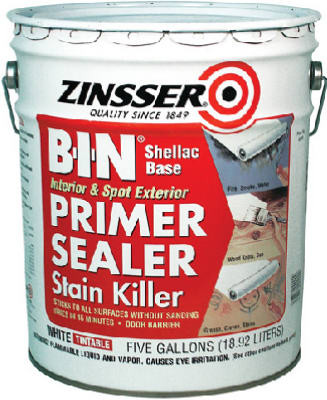 B.I.N., 5 Gallon, White Primer Sealer, White Pigmented Shellac, An All Surface Shellac Based Primer Sealer, Dries In 45 Minutes, Adheres To Any Surface, Kills Stains. vendor ID: 51680 Price/Unit: 195.00EA model: 0900