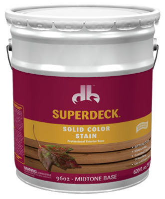 Superdeck, 5 Gallon, Mid Tone Base, Self Priming Solid Color Deck & Siding Stain, VOC 250, No Need To Prime, Can Be Used On Raw Wood Or Previously Coated Surfaces, Great Problem Solver For Chalky Surfaces, 2 Coats. vendor ID: 56820 Price/Unit: 185.00EA model: DB0096025-20
