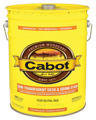 5 Gallon, Neutral Base, VOC, Semi-Transparent Deck & Siding Stain, Lightly Pigmented Oil Stain For Increased UV Protection & Color, Item May Be VOC Restricted In Certain Areas, Please Refer To The Restricted Items Report On MOL For A List Of Items That Are Restricted In Your Area. vendor ID: 3228 Price/Unit: 195.00EA model: 16306-08