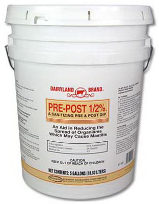 5 Gallon, Pre-Post 1/2% Iodine Teat Dip, A Sanitizing Pre & Post-Dip With 0.5% Available Iodine, Containing Iodophor Complexes In A Solution Of 5% Glycerine, Buffering, & Complexing Agents, Aids In Reducing The Spread Of Organisms Which May Cause Mastitis, Its Glycerin Based Emollient System Has Excellent Skin Conditioning Properties. vendor ID: 470 Price/Unit: 49.99EA model: 1244058