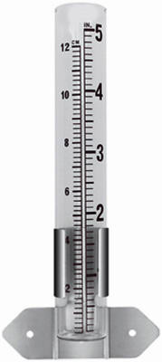 5" Glass Rain Gauge, Red Numbers Are Fired On For Durability, Rust Resistant Adjustable Bracket. vendor ID: 54072 Price/Unit: 2.99EA model: 90106