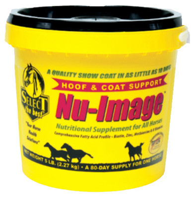 5 LB, Nu-Image, Scientifically Formulated Nutritional Supplement, Rich In Omega-3 & Omega-6 Fatty Acids, Fortified With Biotin, Zinc & Amino Acids, Promotes The Growth Of Exceptionally Healthy, Lustrous Hair, Mane & Tail For Your Horse, High Quality Coat Conditioner, Works With All Feeding Programs & Other Supplements Safely, Without Fear Of Over Supplementation. vendor ID: 8131 Price/Unit: 39.99EA model: 040502