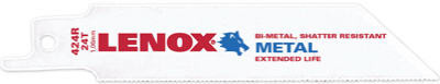Bimetal Reciprocating Saw Blade, 4" X 3/4 X .035 X 24 Teeth, For Metal & Galvanized Pipe 18 Gauge & Under, Packaged 5 Per Vinyl Pouch. vendor ID: 83451 Price/Unit: 14.99EA model: 20554424R