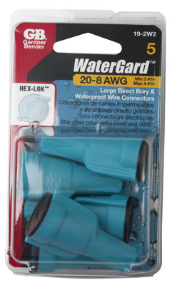 Watergard, 5 Pack, Large, Blue, 20-8 Awg, Wire Connector, Use In Damp/Wet Locations & Direct Bury Applications. vendor ID: 17467 Price/Unit: 6.99EA model: 19-2W2