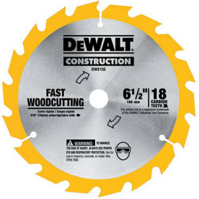 6-1/2", 18 Tooth Framing Blade, 5/8" Arbor, Ultra Thin Kerf Blade For Fast Cutting, Anti-Stick Coating Reduces Friction & Gum Up, Alternate Face Bevel Tooth Grind Provides Sharper Cutting Edge, Professional Quality, Specifically Engineered To Optimize Cutting Performance & Maximize Number Of Cuts Per Charge Of All DeWalt 6-1/2" Cordless Saws. vendor ID: 22426 Price/Unit: 17.99EA model: DW9155