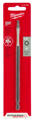 Shockwave, 6", #2, Square Power Bit, Designed For Long Life In All Fastening & Impact Fastening Applications, Forged Tip For Maximum Grip, Geometric Design Provides The Shock Absorption, Proprietary Steel & Heat Treat Process For Maximum Strength & Durability, Skin Carded Packaging. vendor ID: 98327 Price/Unit: 4.99EA model: 48-32-4805