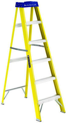 6', Fiberglass, Type I Step Ladder, 250 LB Duty Rating, Molded Top With Tool Slots, Slip Resistant Feet, Pinch Resistant Spreader Braces, Reinforced Bottom Brace, Meets OSHA, CSA & ANSI Standards, Non-Conductive Fiberglass, Double-Rivet Step Construction. vendor ID: 38224 Price/Unit: 74.99EA model: FS2006