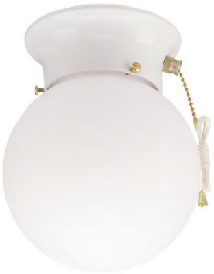 Single Light Flush Mount Ceiling Fixture, White Finish, Pull Chain, White Glass Globe, With 3-1/4" Fitter, Diameter 6", Height 7-3/4", Uses Clear Standard Base Bulb, A-19, 60W Maximum. vendor ID: 39800 Price/Unit: 9.99EA model: 66680