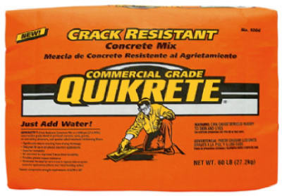 Quikrete, 60 LB, Crack Resistant Concrete Is A 4000 PSI Construction Grade Blend Of Portland Cement, Air-Entraining Admixture & Special Alkali-Resistant Reinforcing Fibers, Significantly Reduces Cracking From Drying Shrinkage, Superior Workability & Has Improved Freeze Thaw Durability, Use For: Driveways, Walkways, Sidewalks & Patios. vendor ID: 78139 Price/Unit: 5.99EA model: 100667