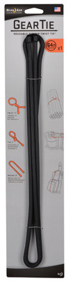 64", Black, Gear Tie, Lightweight, Strong, & Endlessly Versatile, Use For Extra Large Wrapping, Bundling & Securing Jobs, Sturdy, Bendable Wire Interior & Durable, Waterproof Rubber Exterior, Use For Securing Light Weight Loads To Car Roof Racks, To Attaching Backpacks Or Bags To Rolling Luggage, Perfect For Stabilizing Tall Loads To Dollies. vendor ID: 54783 Price/Unit: 7.49EA model: GT64-01-R6