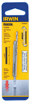 #6 x 32, National Course, Self Aligning Tap & Drill Set, Performance Threading System Self Aligns Tap In Pre Drilled Hole Especially In Irregular Surfaces Or Through Holes, Carbon Steel, Ideal For Routine Maintenance, Repair Work & For Rethreading, Straight Flutes Are Ground To Provide Rapid Chip Removal For Efficient Threading, Designed For Hand Threading Work In A Variety Of Materials, Includes #36 Drill Bit. vendor ID: 2864 Price/Unit: 6.29EA model: 1765531