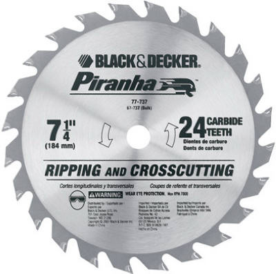 7-1/4", 24 Teeth Piranha Circular Saw Blade, For Smooth, Fast Rips, Crosscuts & Miters, 5/8" Round Diamond Knockout, Cuts All Types Of Wood, Plywood, Chipboard, Masonite, Wallboard, Particle Board, Composition Board & Plastic, Resharpenable, Do Not Use With Masonry, Concrete Or Metals, Bulk. vendor ID: 22426 Price/Unit: 9.99EA model: 67-737