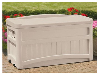 73 Gallon Capacity, Taupe, Deck Storage Box, Long Lasting, Easy To Maintain, Durable Resin Construction, Great For Outdoor Accessories, Wheels & Handles For Portability, Assembled Size: 46"W x 23"D x 25.5"H. vendor ID: 6072 Price/Unit: 99.99EA model: DB7500