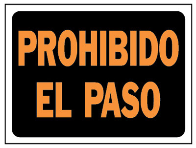 8.5" x 12", Se Prohibido El Paso No Trespassing Sign In Spanish, Hy-Glo Series Plastic Black/Orange. vendor ID: 49601 Price/Unit: 1.49EA model: 3109