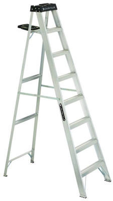 8', Aluminum, Type 1A Stepladder, 300 LB Duty Rating, Molded Plastic Tool Top With Tool Slots, Slip Resistant Feet, Pinch Resistant Spreader Braces, Reinforced Bottom Brace, Meets OSHA, CSA, & ANSI Standards, Full Channel Side Rails, Auto-Tilt Shelf. vendor ID: 38224 Price/Unit: 130.00EA model: AS3008