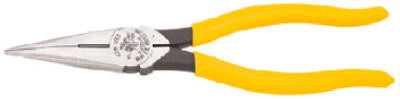 8" Standard Long Needle Nose Plier, With Side Cutter, Exclusive Klein Top Forging, Hot Riveting & Heat Treating Processes Assure Long Lasting Performance & Perfect Alignment. Knives Are Designed To Close At The Hinge First & Meet At Least 3 Quarters Down The Knife, Yellow Plastic Dipped Handles, Carded. vendor ID: 18077 Price/Unit: 29.99EA model: D203-8