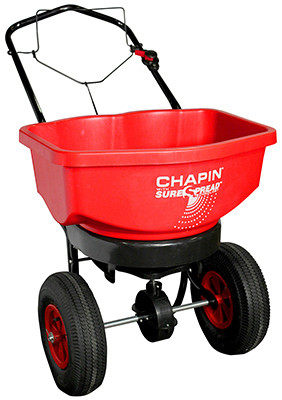 Residential Series, All Season Spreader, 80 LB Capacity Hopper, Ergonomically Designed Bail System That Allows The User To Use Either Hand, Easy To Use Edge Control, Powder Coated Steel Frame Directly Supports Hopper Base & Hopper, Enclosed Gears, 12'' Fully Pneumatic Tires, Ergonomically Angled U-Shaped Tube Handle Bars, Fully Adjustable Gate Dial With Application Reference Chart, 5 Year Limited Warranty. vendor ID: 67868 Price/Unit: 119.00EA model: 80080
