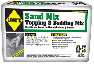 80 LB Sakrete Sand Mix, A Blend Of Portland Cement & Washed Sand, Designed For Repair & Building Jobs Of Less Than 2" Thickness, Can Be Used For Patching Steps, Sidewalks & Floors, Can Be Used As A Topping Over Existing Concrete, As A Grout For Drain Tile, As A Stucco & As A Bedding Mix For Laying Flagstone Or Slate, Exceeds ASTM Specification C387. vendor ID: 7451 Price/Unit: 8.19EA model: 65200400