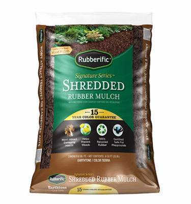 .8 CUFT, Earthtone, Rubberific Mulch, Realistically Textured Ground Cover Is Made From 100% Recycled Rubber & Will Not Fade, Rot, Compress Or Lose Its Original Beauty, Even After Years Of Exposure To The Elements, 100% Recycled Rubber, Average Size Piece 1/2" To 2" In Length, Does Not Attract Harmful Insects, Preserves Ground Moisture Without Absorption, IPEMA Certified To ASTM, 10 Year Warranty Against Complete Color Loss. vendor ID: 3540 Price/Unit: 11.99EA model: RM16ET