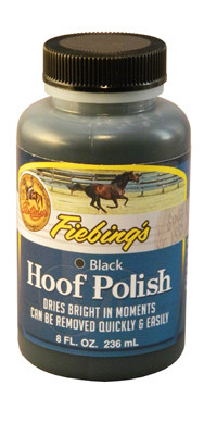 Fiebings, 8 OZ, Black, Hoof Polish, Water Based Polish, Dries Bright, Can Be Removed Quickly & Easily, Bottle With Applicator. vendor ID: 69070 Price/Unit: 4.99EA model: HFPL01P008Z