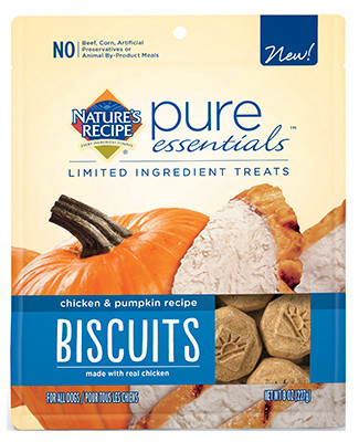 Nature's Recipe Pure Essentials, 8 OZ, Chicken & Pumpkin Recipe Biscuit Regular Dog Treat. vendor ID: 2837 Price/Unit: 5.99EA model: 10730521520141