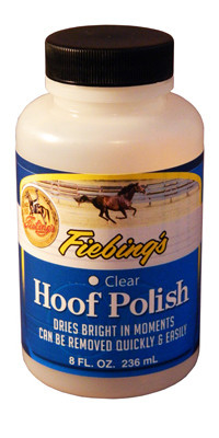 Fiebings, 8 OZ, Clear, Hoof Polish, Water Based Polish, Dries Bright, Can Be Removed Quickly & Easily, Bottle With Applicator. vendor ID: 69070 Price/Unit: 4.99EA model: HFPL91P008Z