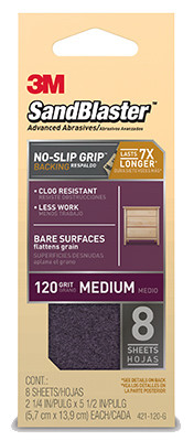 Sandblaster, 8 Pack, 2-1/4" x 5-1/2", 120 Grit, Maroon, Advanced Sandpaper Sheets, With No Slip Grip Backing Is Best For Leveling & Smoothing Rough Or Uneven Bare Surfaces On Any Surface, Wood, Metal, Plastic & Fiberglass. The No Slip Grip Backing Gives You More Control. vendor ID: 38398 Price/Unit: 3.99EA model: 421-120-G