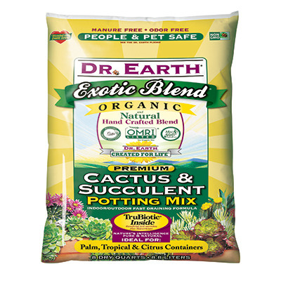Dr. Earth, 8 QT, Exotic Blend Succulent & Cactus Potting Mix, Recommended For Use In All Outdoor, Indoor Potting & Container Applications, Can Use As A Soil Amendment For In Ground Planting Of Succulents & Cacti, Makes An Excellent Mulch & Seed Cover, 100% Organic & Natural, Contains No GMO's Or Sewage Sludge, People & Pet Safe. vendor ID: 7466 Price/Unit: 6.99EA model: 810
