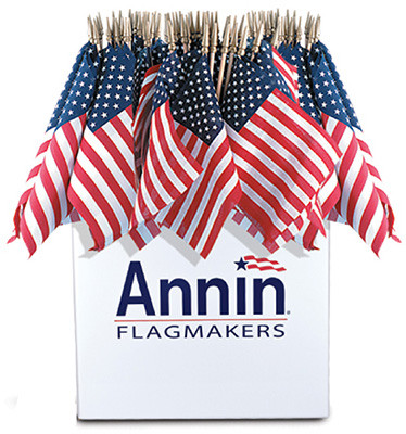 Annin Flagmakers, 8" x 12", US Hand Flag, No Fray Printed On Poly Cotton Material, 24" Wooden Staff with Gold Speartip. vendor ID: 82917 Price/Unit: 0.99EA model: 41294