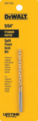 Thunderbolt, 9/64", Titanium Drill Bit, Skin Carded Packaging, For General Purpose Drilling In Wood & Metal, Excellent For Use In Cordless Drills, Titanium Oxide Coating Provides Up To 3 Times Longer Life Than High Speed Steel Bits, 135 Degree Split Point Tip For Fast Starts With No Walking, Thunderbolt Core Resists Breaking. vendor ID: 98327 Price/Unit: 2.99EA model: 48-89-2206
