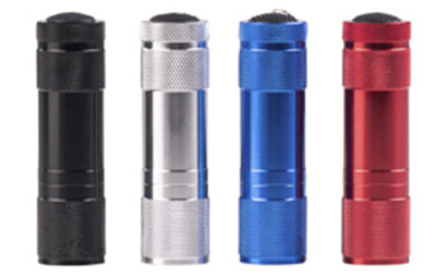 9 LED, Metal Flashlight Display, Assorted Colors, Black/Silver/Red/Blue, Comes Packed With 3X "AAA" Super Heavy Duty Batteries, Wrist Lanyard Included. vendor ID: 5480 Price/Unit: 3.99EA model: DB12-9FTHN-96