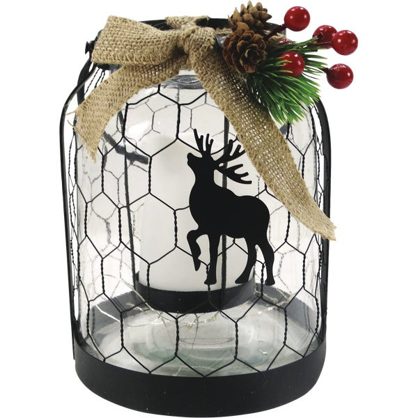 - Alpine 7 In. W. x 9 In. H. x 7 In. L. LED Reindeer Lantern with Chicken Wire Holiday Decoration