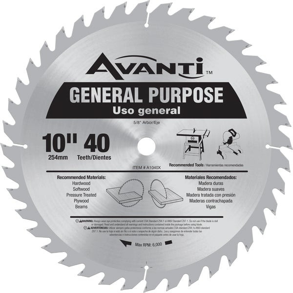 - Avanti 10 In. 40-Tooth General Purpose Circular Saw Blade