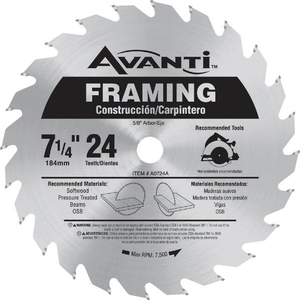 - Avanti 7-1/4 In. 24-Tooth Framing Circular Saw Blade