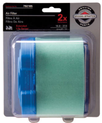 Briggs & Stratton, Air Filter Cartridge With Pre-Cleaner, Fits On Later Model Intek V-Twin Engines Ranging From 22HP- 26Hp, For Use On Brands Such As Ariens, Craftsman, Husqvarna, MT, Poulan Pro & Many Others Equipped With The Listed Engines, DIY Version Of Briggs Service Part# 792105. vendor ID: 74880 Price/Unit: 24.49EA model: 5405K