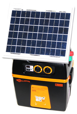 B200, Solar Fence Charger, 1.45 Joules Of Stored Low Impedance Power, Powers Up To 90 Acres, 15 Miles, Of Multi-Wire Fence, Robust Durable Design For Long Life, Carry Handle For Easy Transportation, Enclosure To Contain Battery, Adjustable Battery Save Options Extend Battery Life, Weatherproof Electronics, Highly Visible Low Battery & Fence Voltage Indicator Lights, Fully Modular, Large Earth & Fence Terminals, Earth/Fence & Battery Leads Included. vendor ID: 7758 Price/Unit: 599.00EA model: G393SK