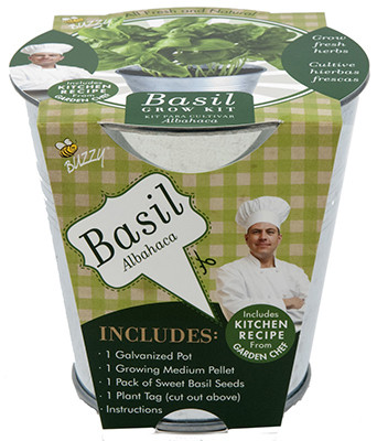 Basil Garden Chef Kit, Includes Everything Needed To Grow Your Own Sweet Basil At Home, Includes A 4.3" Round Galvanized Pail, Basil Seeds, Growing Medium, A Cut-Out Plant Label On The Packaging & A Recipe From The Garden Chef. vendor ID: 1196 Price/Unit: 3.99EA model: 95470