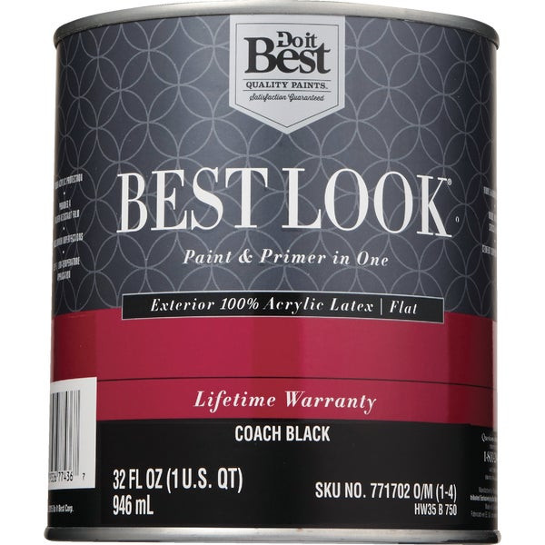 - Best Look 100% Acrylic Latex Premium Paint & Primer In One Flat Exterior House Paint Coach Black 1 Qt.