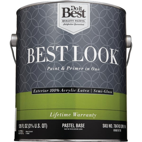 Best Look 100% Acrylic Latex Premium Paint & Primer In One Semi-Gloss Exterior House Paint Pastel Base 1 Gal.
