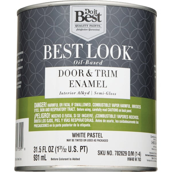 Best Look Alkyd/Oil Base Semi-Gloss Door & Trim Enamel Interior Wall Paint White-Pastel Base 1 Qt.
