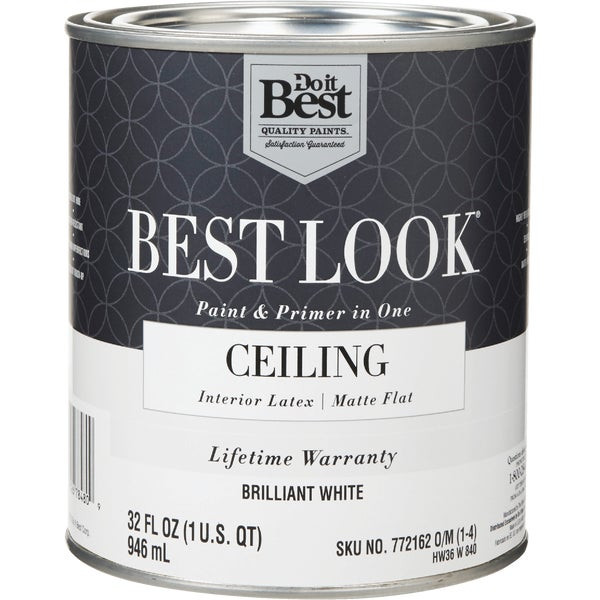 - Best Look Latex Paint & Primer In One Matte Flat Ceiling Paint Brilliant White 1 Qt.