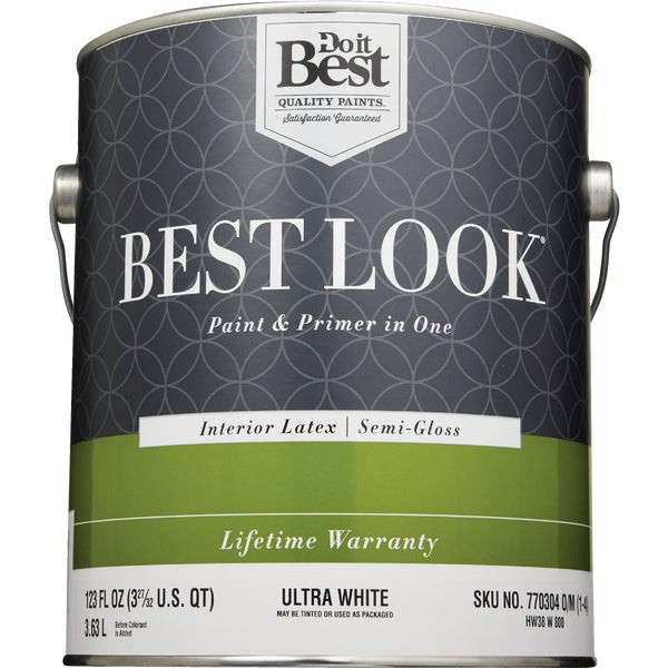 Best Look Latex Premium Paint & Primer In One Semi-Gloss Interior Wall Paint Ultra White 1 Gal.