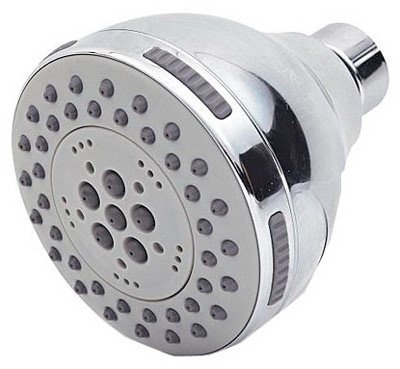 Baypointe, Adjustable Fixed Wall Shower Head, Plastic With Chrome Finish, 3" Diameter, 1.8 GPM Maximum Flow, 5 Settings, Plastic Ball Joint. vendor ID: 5 Price/Unit: 16.99EA model: 138319CA