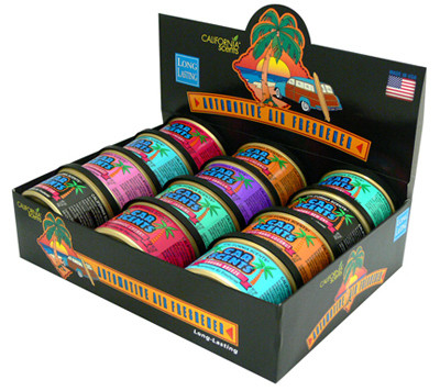 California Car Scents, Car Scents Provides Maximum Strength Freshening For Up To 60 Days, Each Car Scents Canister Is Environmentally Friendly From The Recyclable Aluminum Canister To The Biodegradable Fiber Pad Inside, Assorted With Best Selling Fragrances, Laguna Breeze, Monterey Vanilla, Coronado Cherry, Desert Jasmine, Orange Blossom, La Jolla Lemon, Shasta Strawberry, Capistrano Coconut, Santa Barbara Berry, Gardenia Del Mar, Newport New Car, Napa Grape, Golden State Delight, Malibu Melon, Palm Springs Pineapple, Hawaiian Gardens, L.A. Lavender, Mojave Mango, Citrus Splash, Melon Mango, Smoke Away, Fresh Linen, Squash Blossom, Concord Cranberry, Vista Grapefruit, Cinnamon Apple, Balboa Bubblegum & Arctic Ice, Counter Display. vendor ID: 3134 Price/Unit: 2.99EA model: CCS-16VA MC