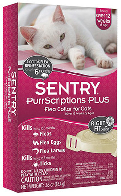 Sentry Purrscriptions Plus, Cat Flea & Tick Collar IGR, Kills Fleas, Flea Eggs, Flea Larvae, Controls Reinfestation For Up To 6 Months. Injected molded collar with notches to fit the collar securely to your pet. vendor ID: 798 Price/Unit: 8.99EA model: 02068