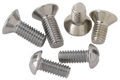 Chrome Faucet Handle Screws, Assorted Sizes, Package Contains 2 Each: Oval Head #SC0468, 3/8" x 10-32 & #SC0459, 1/2" x 10-32 & Round Head #SC0006, 3/8" x 8-32 Thread, For Central Brass, Sayco & Sterling, Blister Card. vendor ID: 25460 Price/Unit: 3.49EA model: SC0401