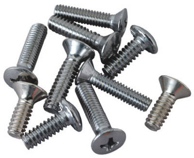 Assorted Sizes Of Chrome Faucet Handle Screw, Package Contains 2 Each: Oval Head 1/2" x 10-24, 3/4" x 10-24, 3/4" x 10-32, 3/4" x 8-32 & Truss Head 1/2" x 1-24 Thread, Blister Card. vendor ID: 25460 Price/Unit: 3.79EA model: SC0400