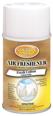 Country Vet, Fresh Cotton Metered Fragrance Air Freshener, Premium Fragrance With Odor Counteractant That Is Released Into The Air Every 15 Minutes, Lasts 30 Days, Used In Automatic Dispensers. vendor ID: 81349 Price/Unit: 5.99EA model: 332511CVCAPT