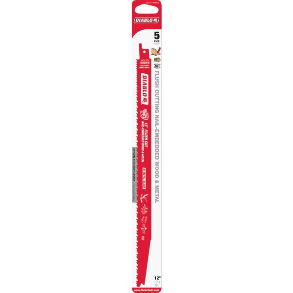 - Diablo 12 In. 10/14 TPI Flush Wood/Metal Reciprocating Saw Blade (5-Pack)