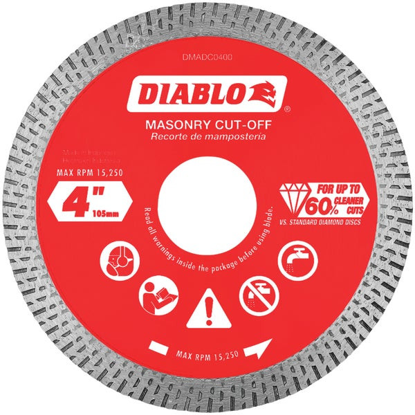 - Diablo 4 In. Diamond Continuous Rim Dry/Wet Cut Diamond Blade